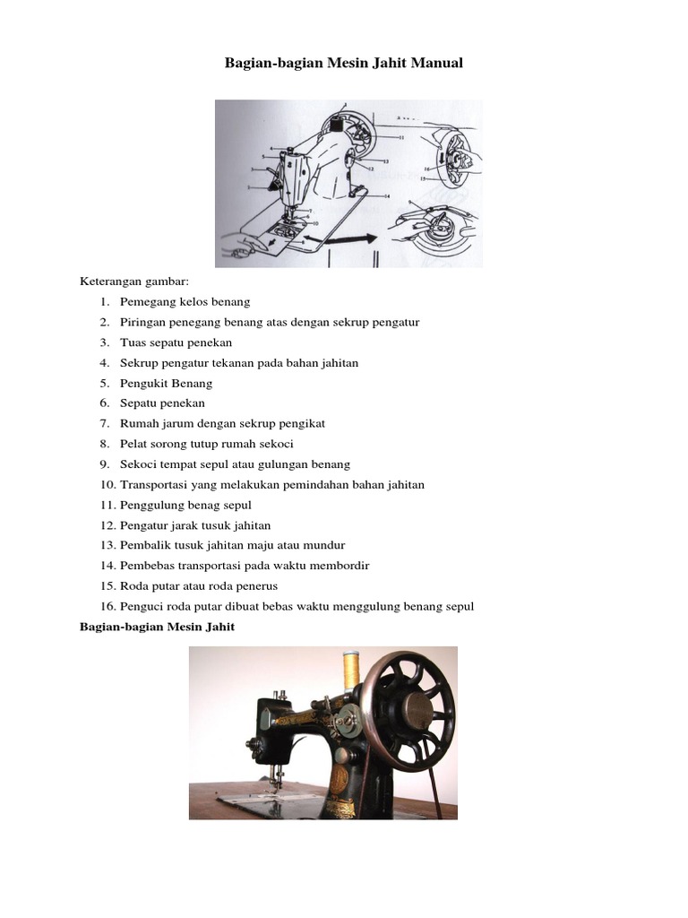 Mesin jahit manual adalah mesin jahit yang dapat digerakkan dengan tangan, kaki dan dynamo listrik. Akan tetapi sekarang sudah banyak jenis mesin jahit modern, mulai dari mesin jahit listrik hingga mesin jahit komputer. Waktu yang diperlukan untuk mencuci dan mengeringkan pakaian dapat ditentukan terlebih dahulu gearbox mesin cuci. Model klasik dilengkapi assesoris menjahit. Bagian utama tersebut yaitu silinder head, silinder blok, dan. Alat pemotong kerupuk lontongan manual. Fungsi attachment (alat bantu) menjahit antara lain dapat menghemat waktu serta dapat bekerja lebih kreatif. Agar anda bisa mementukan pilihan dengan tepat. Setidaknya dengan mengenal alat tenun gedogan beserta komponennya. Seiring kemajuan teknologi, sekarang sudah ada mesin jahit portable yang memiliki fungsi hampir sama dengan yang manual, namun terdapat beberapa fitur yang berbeda. Nama alat komponen mesin jahit manual.com : Mesin jahit manual masih banyak digunakan, khususnya bagi penjahit rumahan, karena memiliki harga yang relatif lebih murah. Tempat akhir benang atas 13.